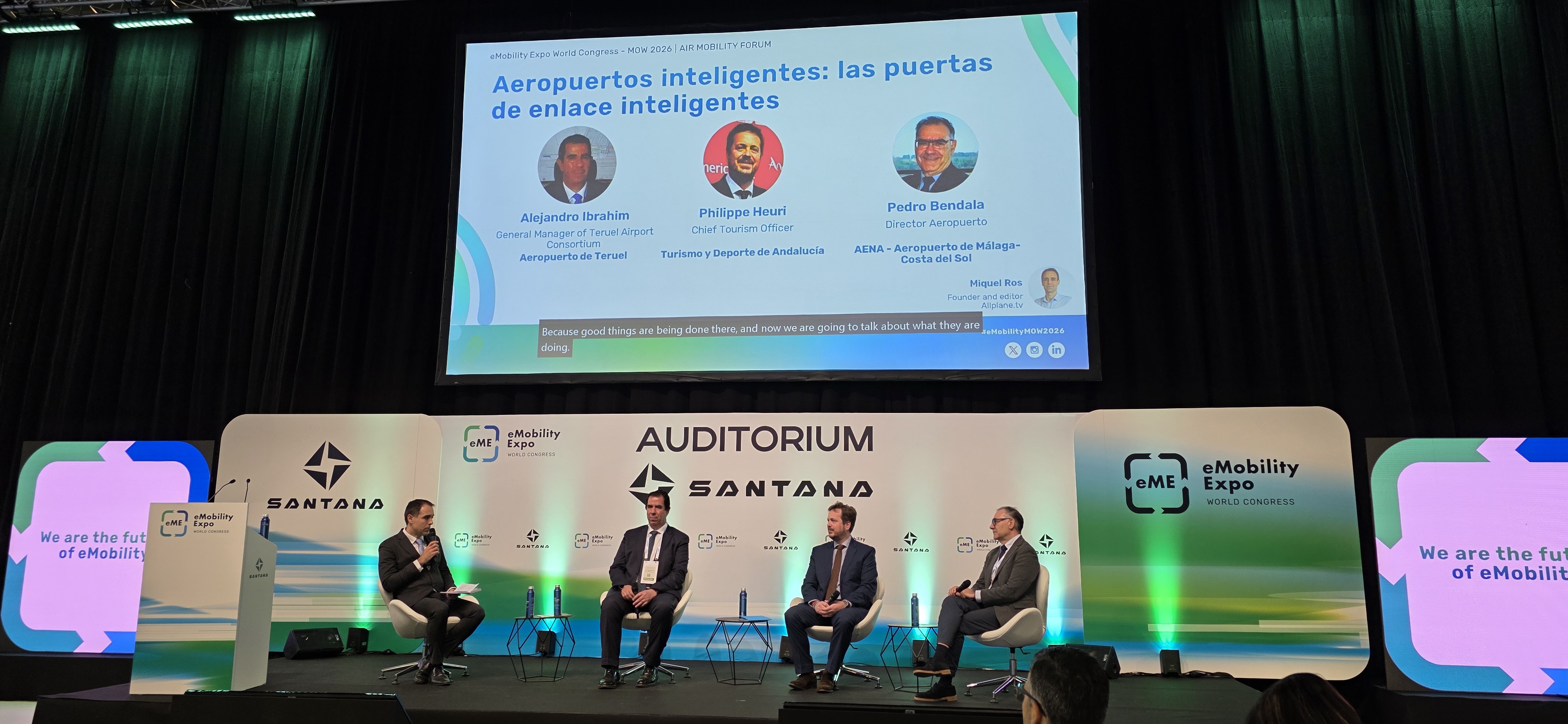 In addition, Alejandro Ibrahim also participated as a speaker in the other panel on smart airports, presenting the growth and evolution of Teruel Airport to become the largest MRO and long-term storage center in Europe. The panelists were Málaga Airport, the Regional Government of Andalusia, and Teruel Airport. He explained how an aeronautical industrial airport like Teruel Airport has become a benchmark in the sector, not by managing passengers, but by handling aircraft, with industrial, logistical, and MRO activities, addressing innovations such as stratospheric flights with HAPS (High Altitude Platform Systems) and eVTOL (Electronic Vertical Landing) aircraft. The discussion focused on the passenger experience in the context of digitalization and the new innovative challenges facing global air transport.